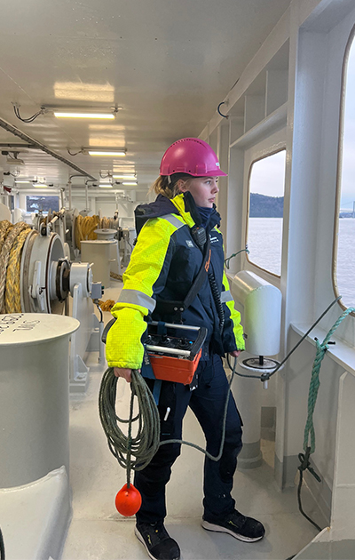 – Jeg har aldri følt at en 7-til-16-jobb var noe for meg, så jeg bestemte meg allerede i 8. klasse at det var dette jeg ville gjøre. Jeg liker turnuslivet og synes at det er veldig spennende å jobbe på havet. Hver dag er forskjellig, og det er så fint å se norskekysten. Jeg er kjempefornøyd med det valget jeg tok, avslutter hun.
